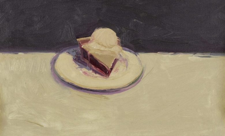 به گزارش انرژی ورزشی، چیزهای کمی وجود دارند که بتوانند بهتر از یک برش کیک پای یا یک تکه بستنی، حس آمریکایی بودن را به وضوح منتقل کنند. این یک خوراکی نوستالژیک و آرامشبخش است، که همیشه روی ایوان مادربزرگ در حال خنک شدن یا در انتظار در یک کافیشاپ در یک بعدازظهر تنبل تابستانی بوده است. با این حال، نقاشی Pie a la Mode (۱۹۶۱) اثر «وین تیبو»(Wayne Thiebaud)، کمی مبهمتر است. مثل همیشه، بافت رنگ در کار او وسوسهانگیز است: خمیرِ پای بهدرستی سفت است، بستنی غلیظ و خامهای است، که هنگام ذوب شدن با میوهی قرمز تیرهی پای درمیآمیزد. اما زمینهی پای کمتر وسوسهانگیز است. تنهاست، در انتهای تابلو به عقب رانده شده، در برابر دیواری سیاه و سخت، بدون قاشق یا هیچ انسانی در تصویر.