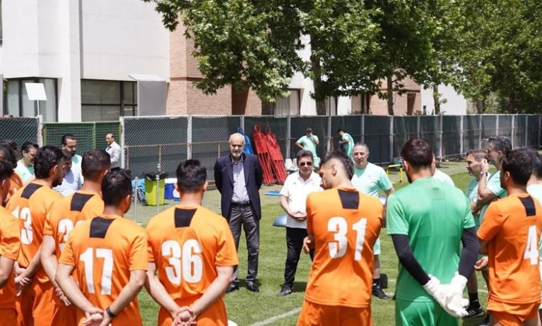 مهدی تاج رئیس فدراسیون فوتبال امروز با حضور در تمرین تیم ملی به امیر قلعهنویی و بازیکنان تیم ملی فوتبال خسته نباشید گفت.