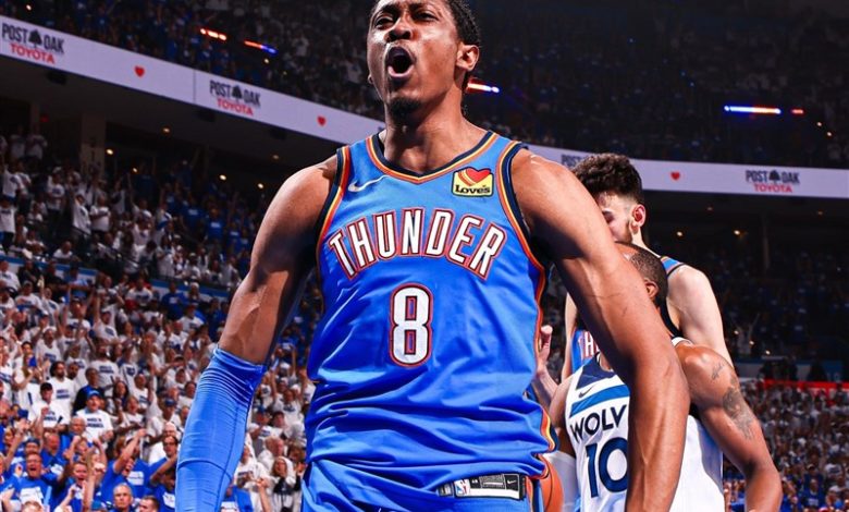به گزارش خبرگزاری انرژی ورزشی، تیم بسکتبال اوکلاهماسیتی تاندِر از همان ابتدای بازی پنجم برابر مینه سوتا تیمبرولوز، کنترل میدان را در دست گرفت و با دفاعی خفهکننده و حملاتی برقآسا، با اختلاف 30 امتیاز و با نتیجه 124 بر 96 پیروز شد تا سری را با نتیجه 4 بر یک به پایان برساند و جواز حضور در فینال NBA را کسب کند.