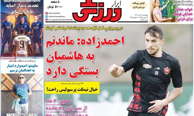 روزنامه‌های ورزشی چهارشنبه ۱۸ تیر ۱۴۰۴