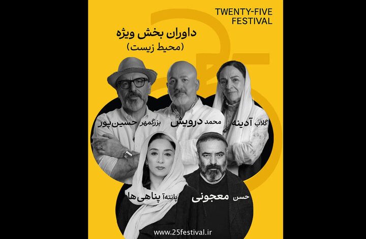 به گزارa خبرگزاری خبرآنلاین، با حکم خسرو نقیبی دبیر جشنواره «۲۵»، پنج چهره فرهنگی و هنری بهعنوان اعضای هیئت داوران بخش ویژه این جشنواره با محوریت محیط زیست منصوب شدند. گلاب آدینه، محمد درویش، بزرگمهر حسینپور، حسن معجونی و پانتهآ پناهیها، آثار رسیده به این بخش را ارزیابی و داوری خواهند کرد.