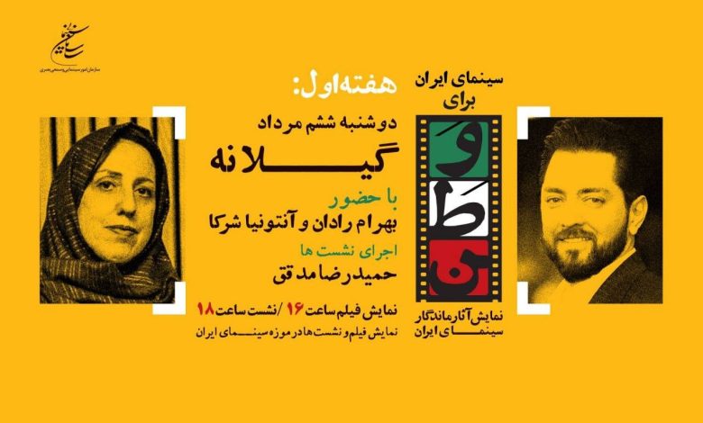 به گزارش خبرگزاری خبرآنلاین به نقل از ادارهکل روابطعمومی سازمان سینمایی، روز سوم برنامه «سینمای ایران برای وطن» با نمایش نسخه مرمت شده فیلم «گیلانه» ساخته رخشان بنیاعتماد و محسن عبدالوهاب در موزه سینما برگزار میشود. نمایش این فیلم ساعت ۱۶ فردا دوشنبه ۶ مردادماه در سالن فردوس خواهد بود و در ساعت ۱۸ سومین نشست با حضور بهرام رادان و آنتونیا شرکا با اجرای حمیدرضا مدقق برگزار خواهد شد.