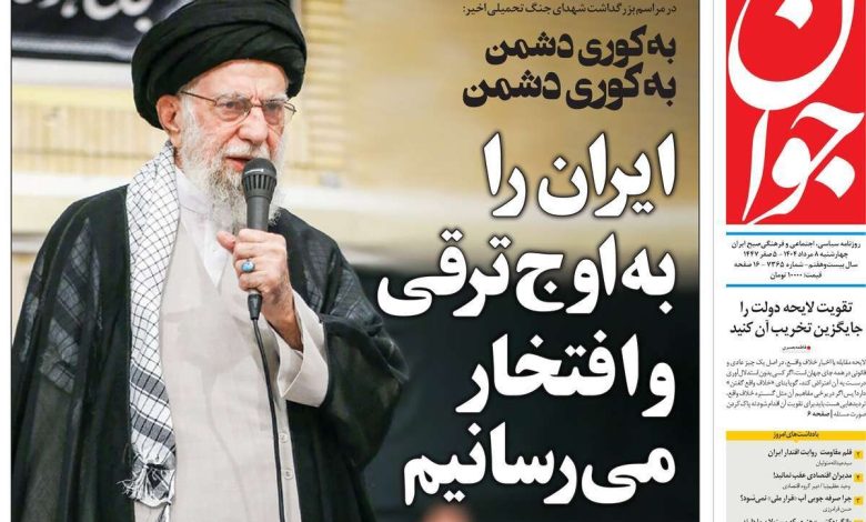 بیانات مهم رهبرمعظم انقلاب در مراسم بزرگداشت شهدای حنگ12روزه، واکنشها به لایحه انتشار اخبار خلاف واقع در فضای مجازی و… از تیترهای مطبوعات امروز است.
