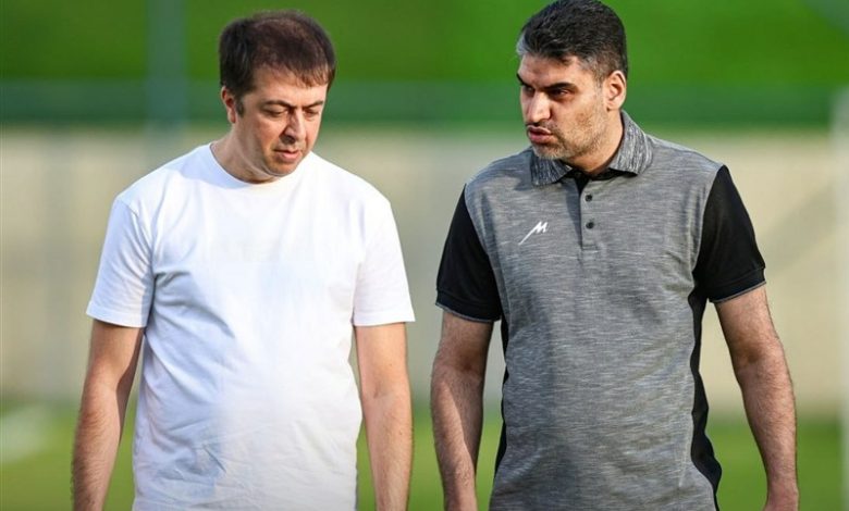 * درویش با وحید امیری در حال مذاکره است. او یکی از بازیکنان شاخص تاریخ پرسپولیس است.