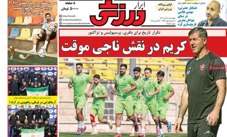 روزنامه‌های ورزشی چهارشنبه هفتم آبان ۱۴۰۴